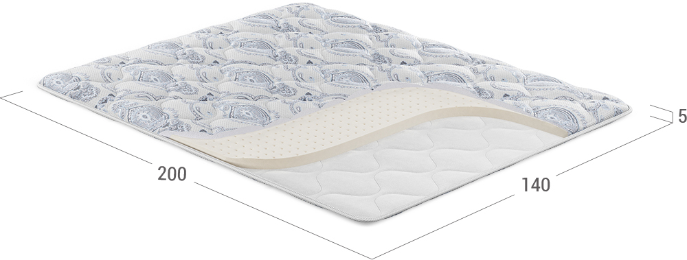 В основе топпера — натуральный латекс Latexgold, который обеспечивает упругую поддержку тела, снимает нагрузку с мышц и поддерживает физиологически естественное положение позвоночника, предотвращая возникновение излишнего прогиба в поясничном отделе.