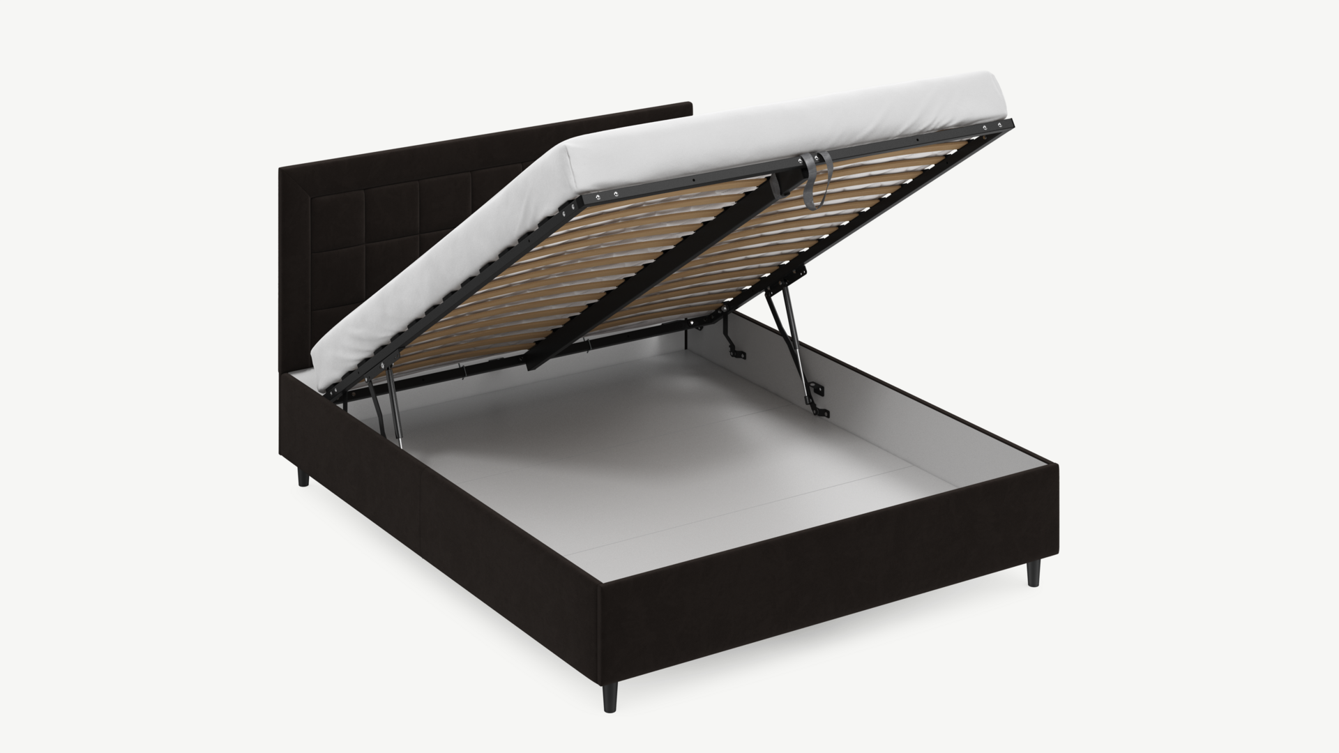• Скрытая под основанием вместительная емкость без внутренних перегородок позволяет использовать всю площадь подкроватного пространства для хранения вещей.