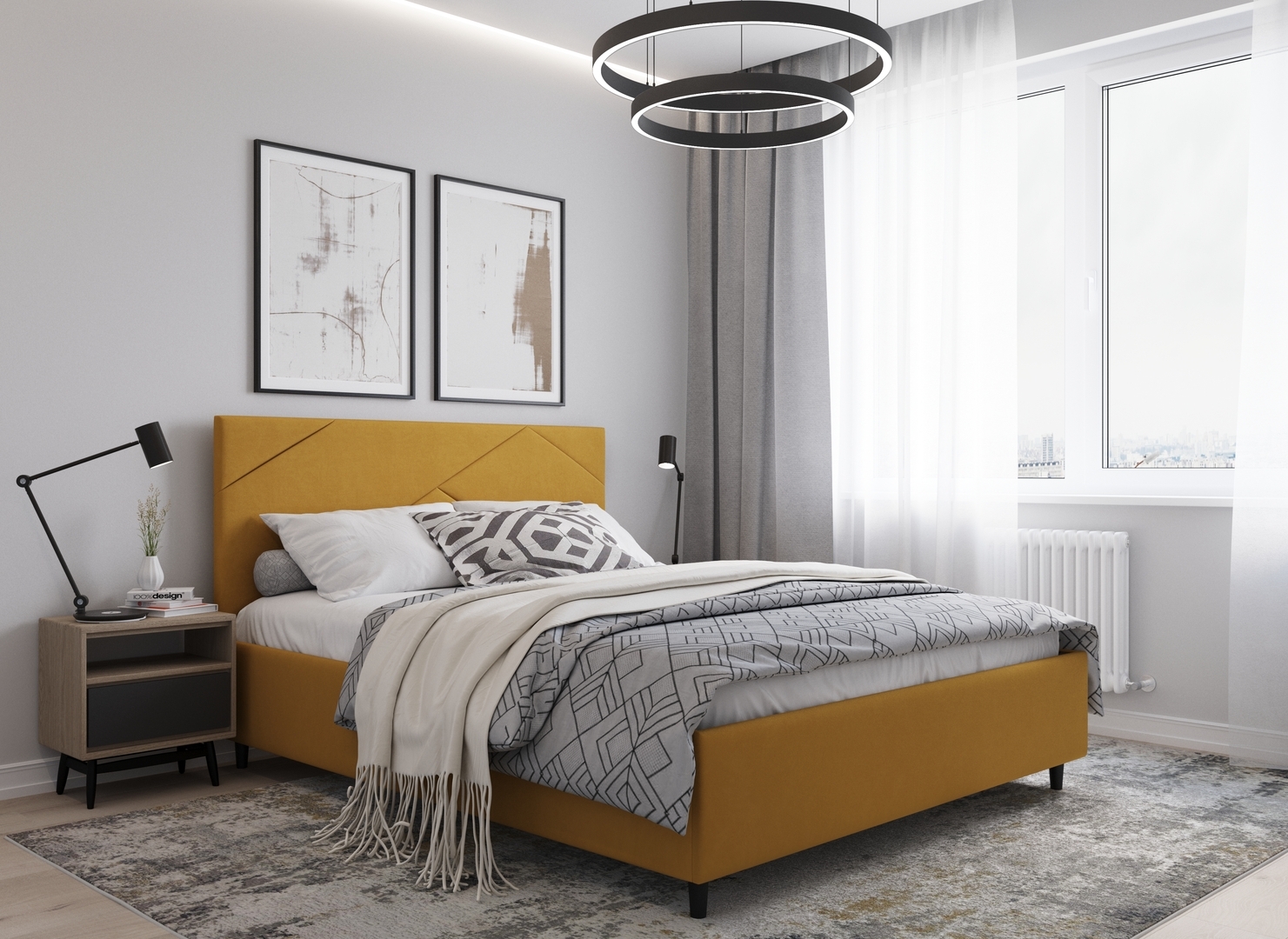 Элегантным и практичным акцентом служат скрытые карманы, расположенные по его углам. Лаконичные формы объемных царг создают единый гармоничный образ и фокусируют внимание на центральном текстурном элементе кровати.