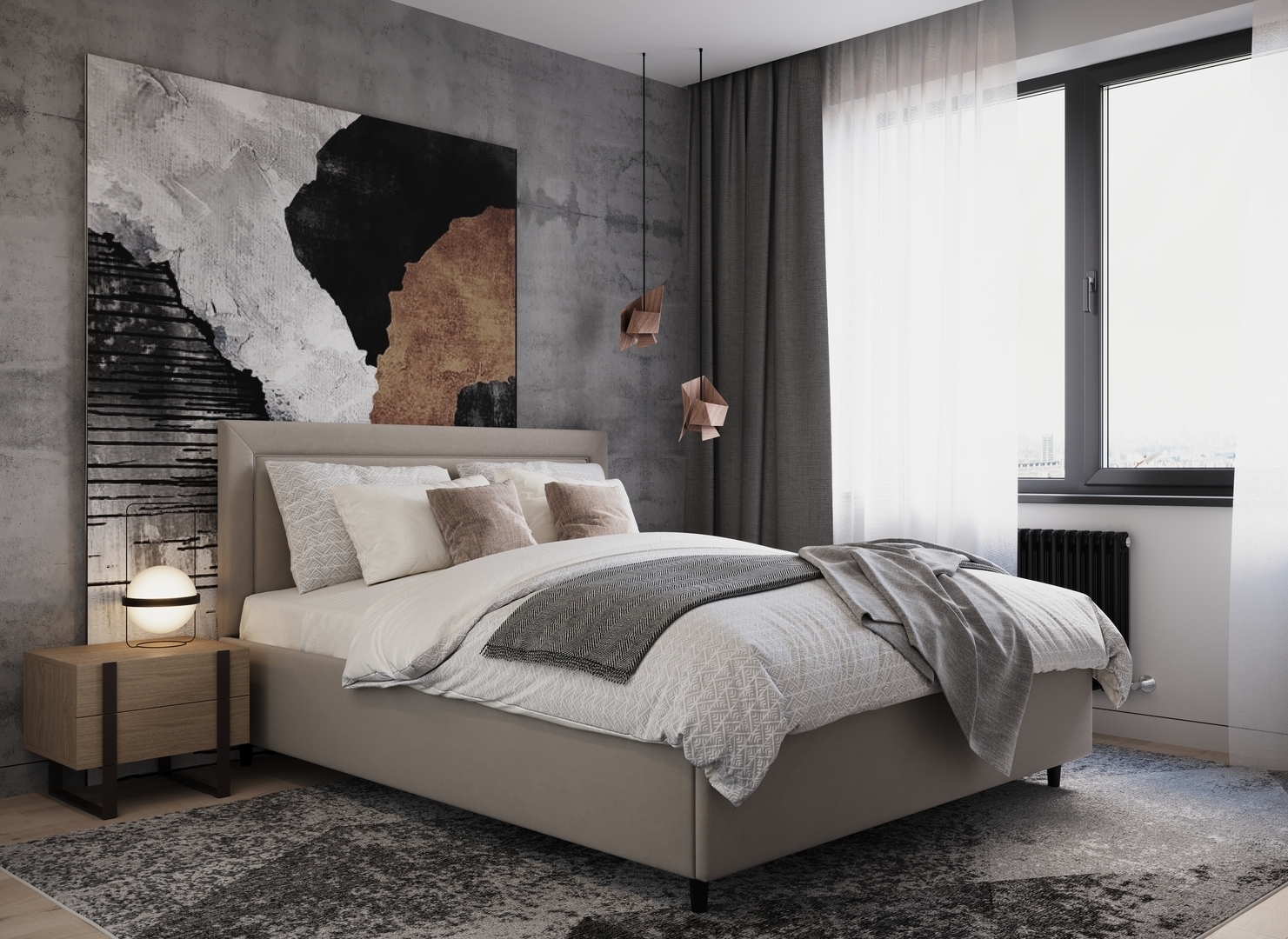 Создать гармоничный интерьер, а также целостный образ спальни помогут дополнительные аксессуары - например, тумбы, банкетки, подушки.